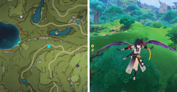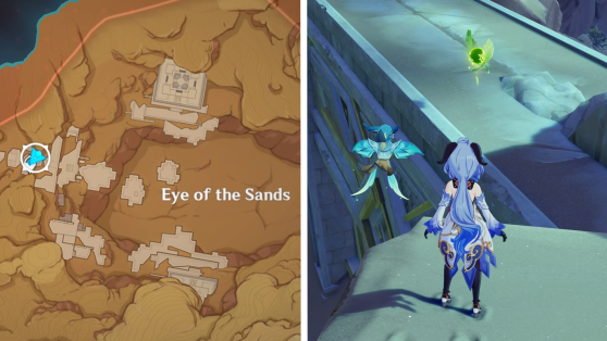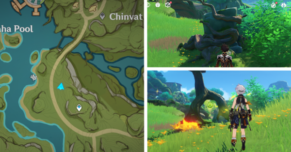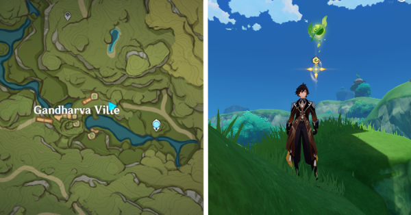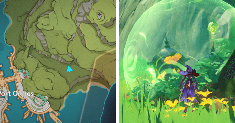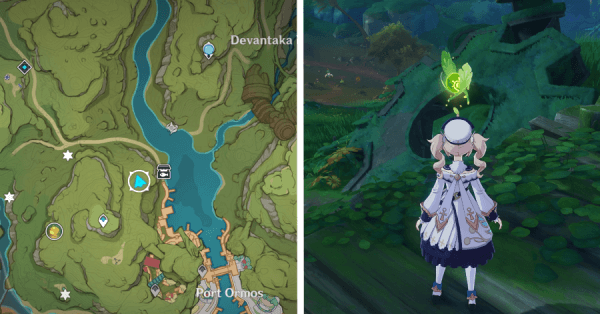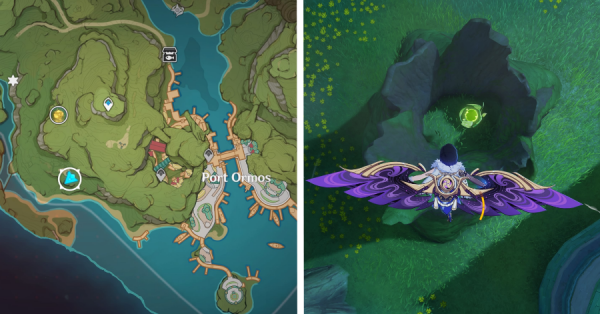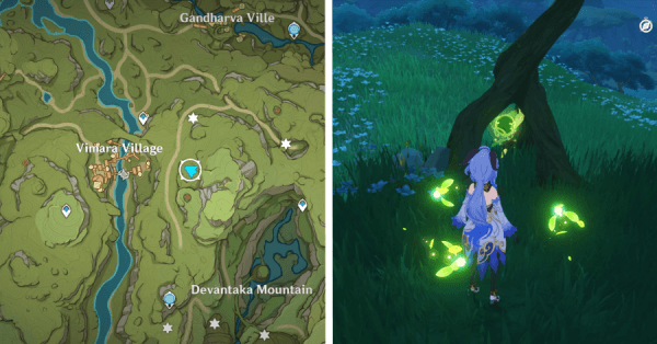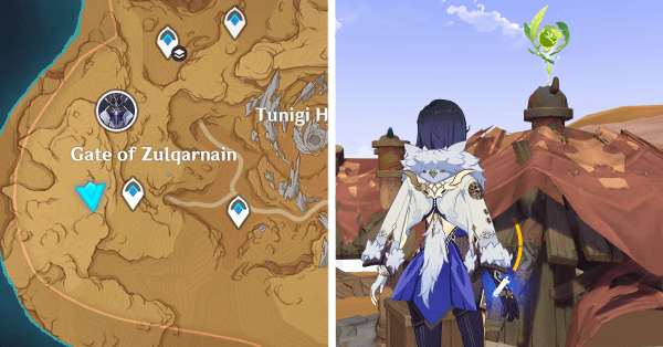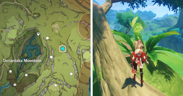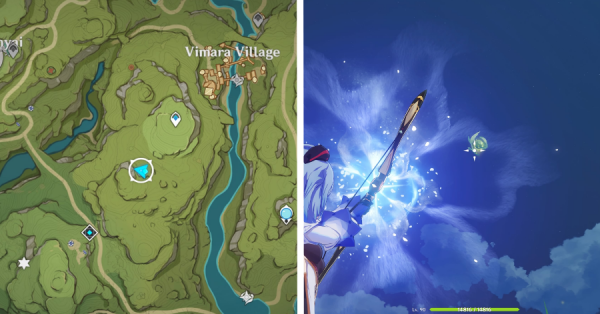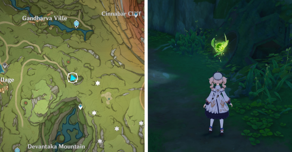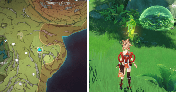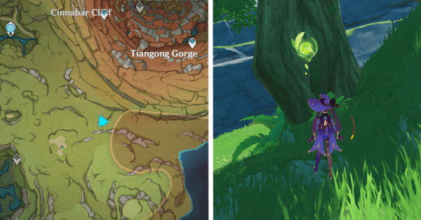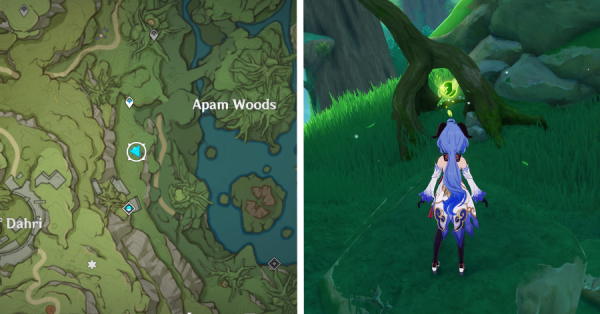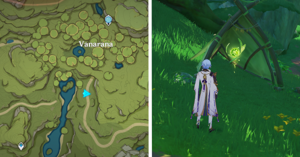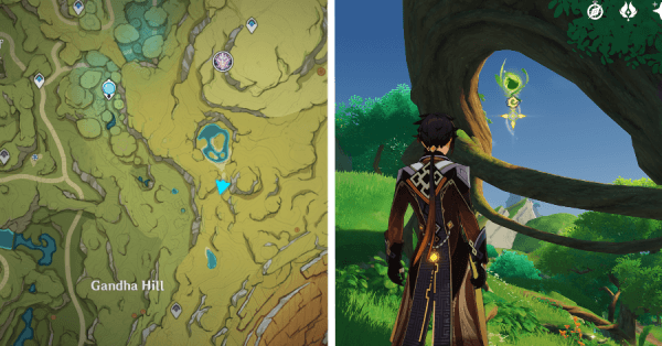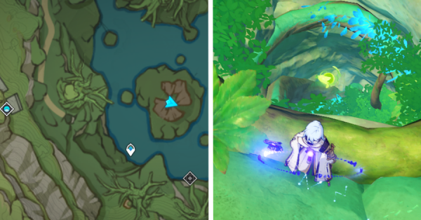 | 9 | ![]() Расположен на вершине холма, где находится пещера Электро Папоротника. Используйте Дендро на кустах, чтобы вызвать Четырехлистный символ и получить окул. |