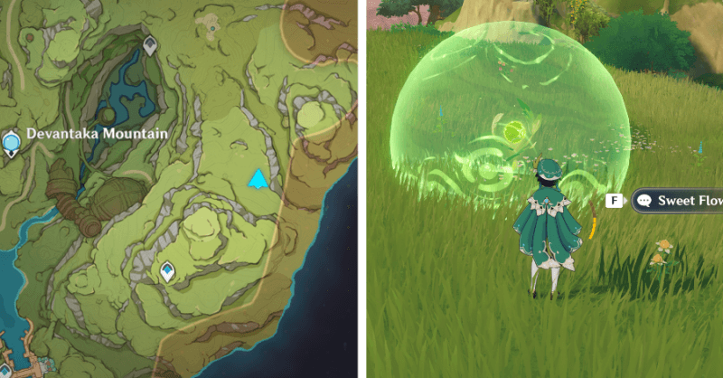 | 67 | ![]() Расположен на холме к востоку от горы Девантаки, внутри купола. Соберите цветы, победите Попрыгуний и возьмите окул. |
