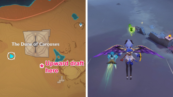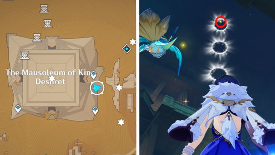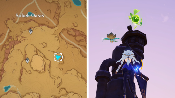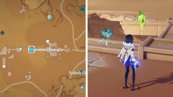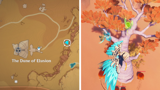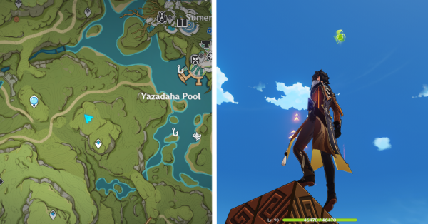 | 45 | ![]() Расположен высоко в воздухе. Используйте Дендрогранум, чтобы активировать 4 Дендро-монумента и активировать ветряной поток. Поднимитесь по нему, чтобы достать окул |