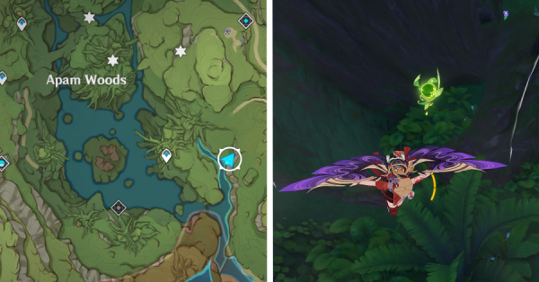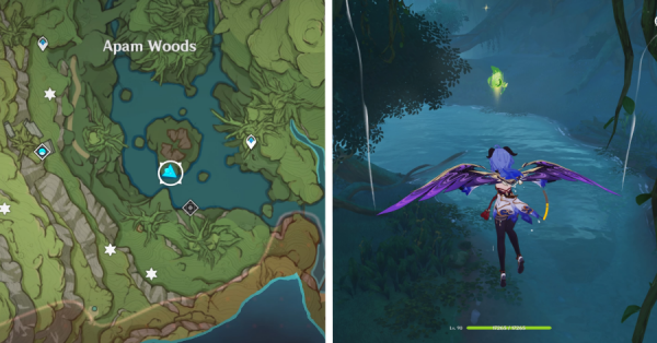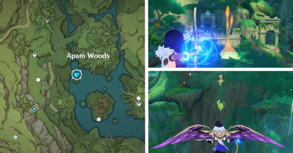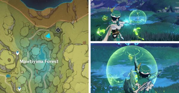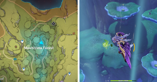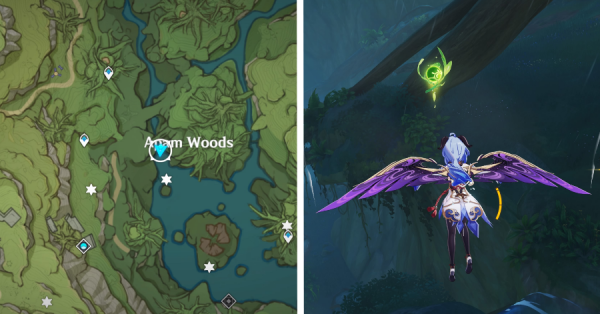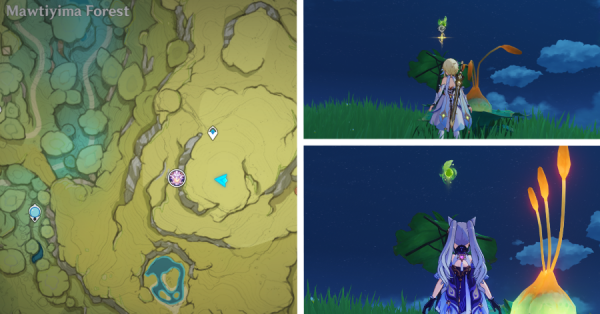 | 4 | ![]() В лесу Мотийимы активируйте гриб на земле рядом с несколькими слаймами, чтобы вызвать поток ветра и собрать Дендрокул. |