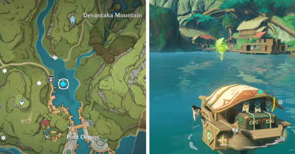 | 43 | ![]() Расположен на верхушке одной из ветвей дерева в городе Сумеру. Поднимитесь по стене святилища Сурастана и заберитесь на ствол дерева. |