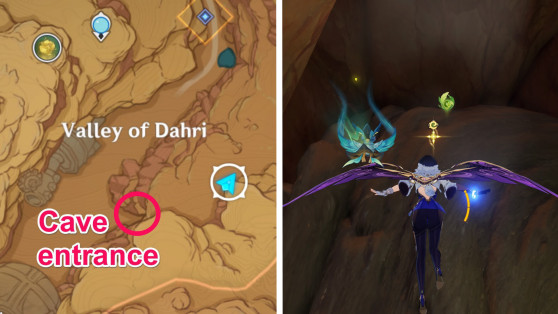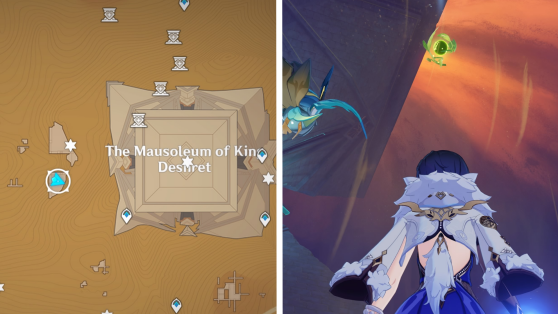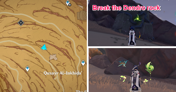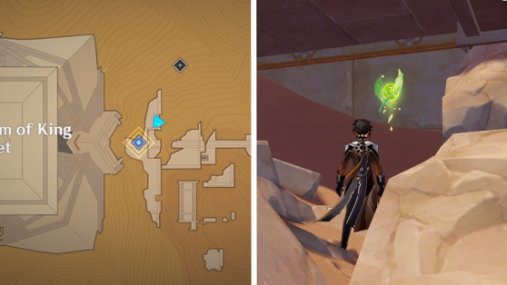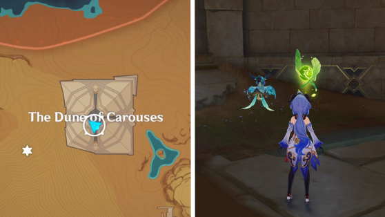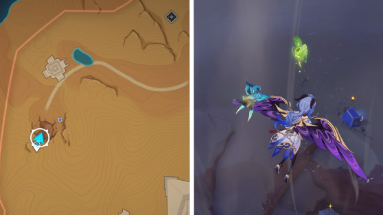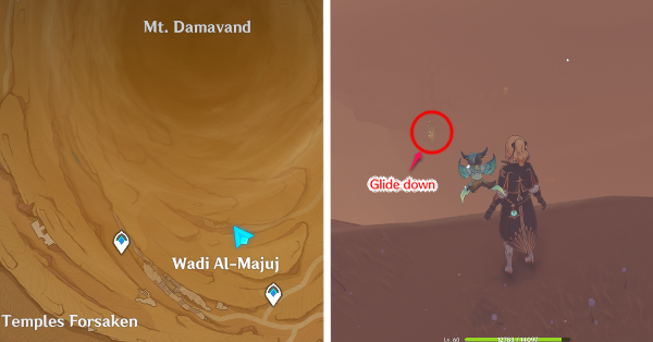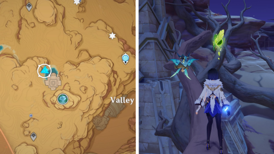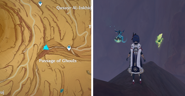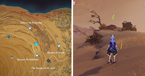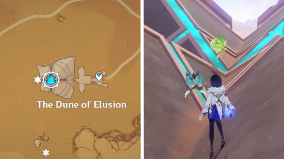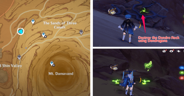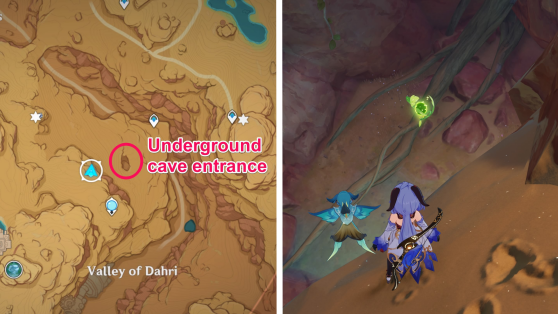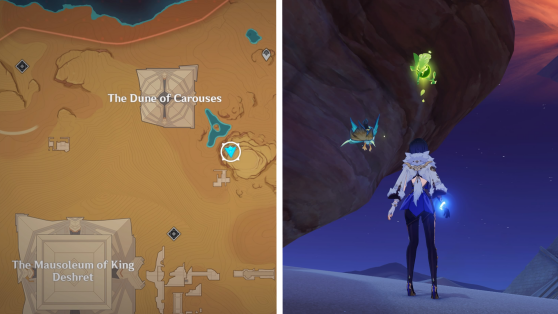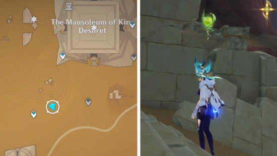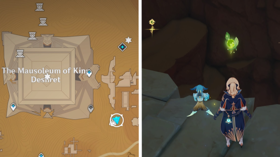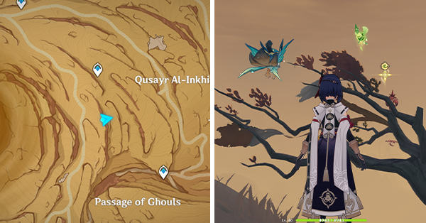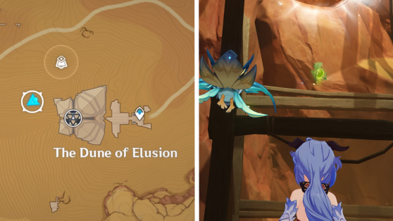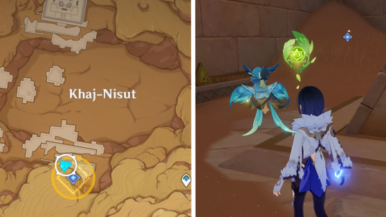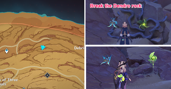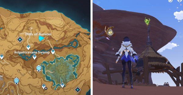 | 61 | ![]() Расположен внутри убежища Пустынников. На входе Паймон начнет говорить о слежке за одним из них. Следуйте за женщиной, идущей по дороге, пока она не назовет пароль. Используйте пароль на механизме у входа, чтобы открыть дверь. Дендрокул находится в первой комнате справа. |