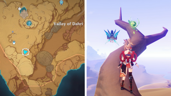 | 62 | ![]() Расположен в долине Дахри. Он находится на ветке у обрыва. У точки телепорта есть Четырехлистные символы, которые приведут вас к окулу. |