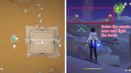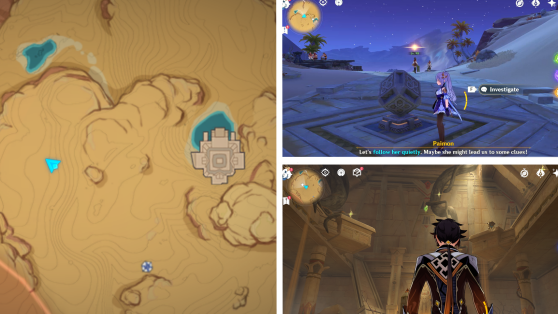 | 54 | ![]() Начните квеста Храм, где пески текут, точно слёзы, чтобы попасть внутрь храма. Следуйте заданию и решайте головоломки, чтобы найти Дендрокул |