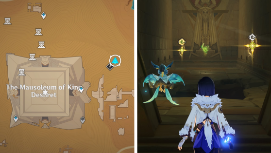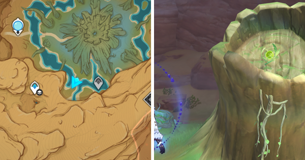 | 21 | ![]() Расположен внутри пещеры к юго-востоку от Ванараны. Вам нужно будет очистить территорию от затопления, уничтожив две увядающие ветви, затем активировав Дендро монумент, чтобы снизить уровень воды. |