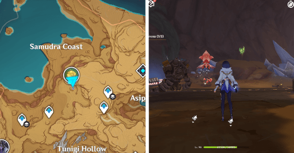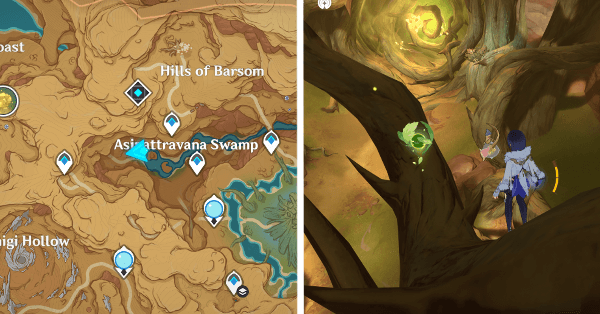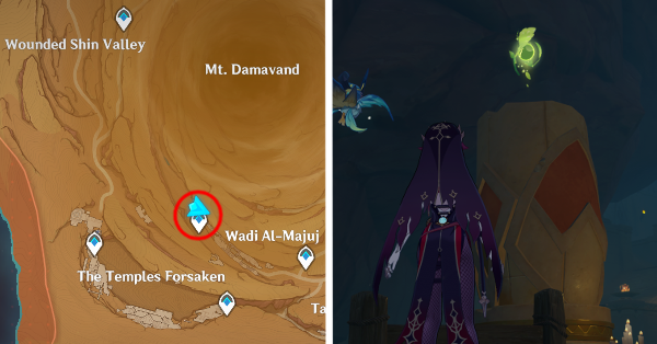 | 22 | ![]() Расположен в подземной пещере, к западу от города Сумеру. Найдите туннель к востоку от телепорта и следуйте по тропинке, пока не найдете Дендрокул. |