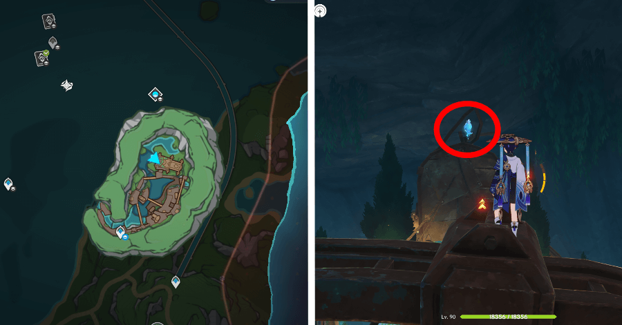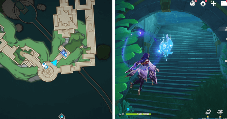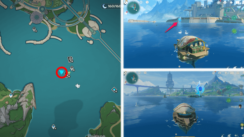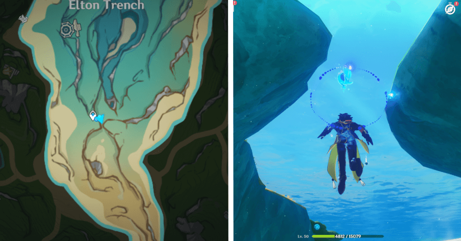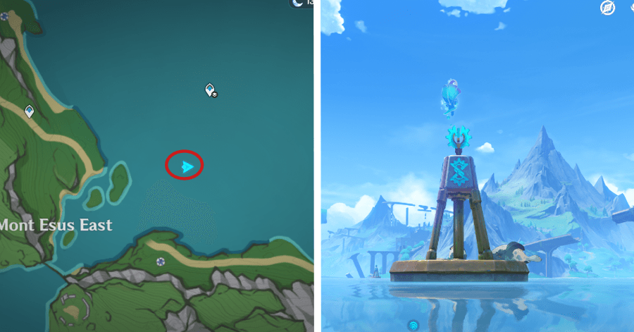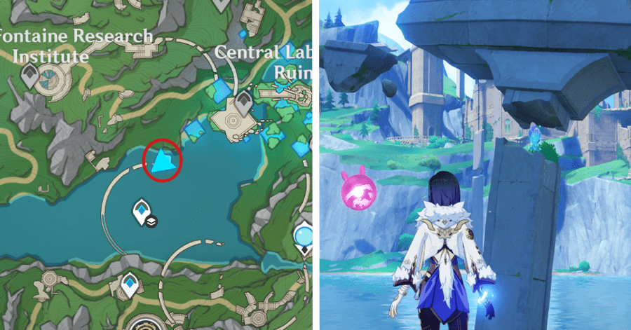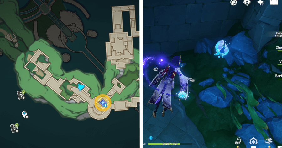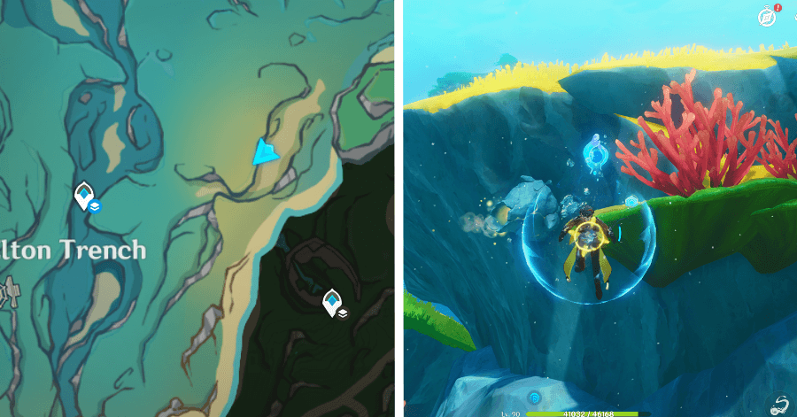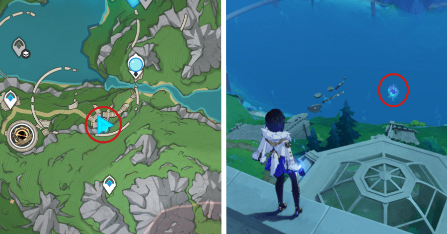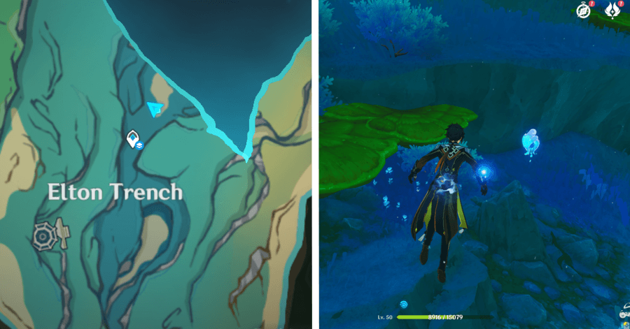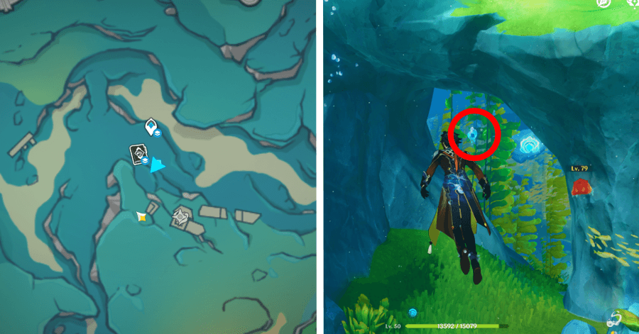 | 54 | ![]() От подводного телепорта спускайтесь, пока не наткнетесь на следы кораблекрушений, и следуйте по ним до самой пещеры. Окул будет находиться на вершине затонувшего корабля |
