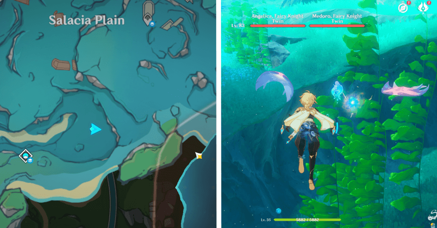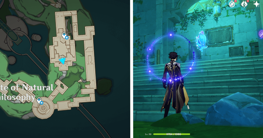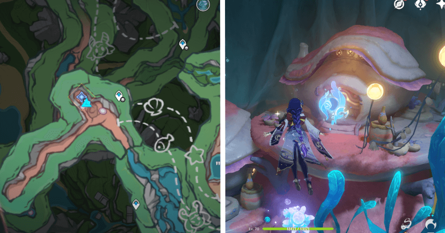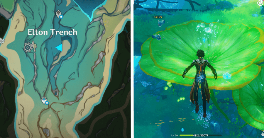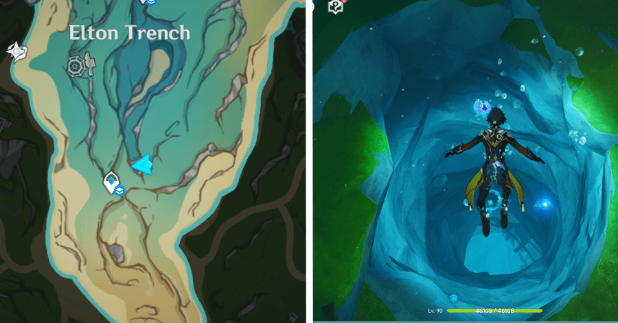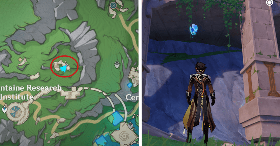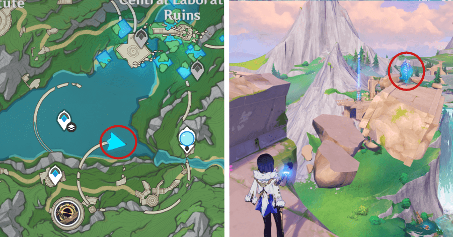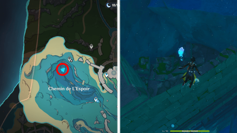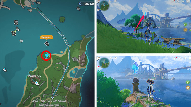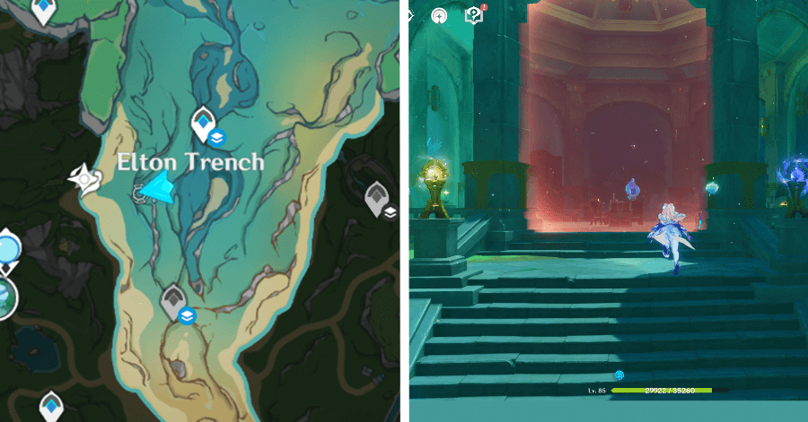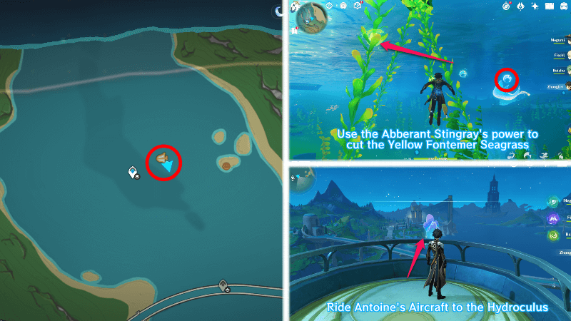 | 54 | ![]() От подводного телепорта спускайтесь, пока не наткнетесь на следы кораблекрушений, и следуйте по ним до самой пещеры. Окул будет находиться на вершине затонувшего корабля |