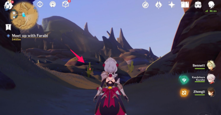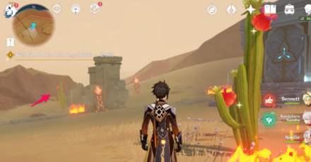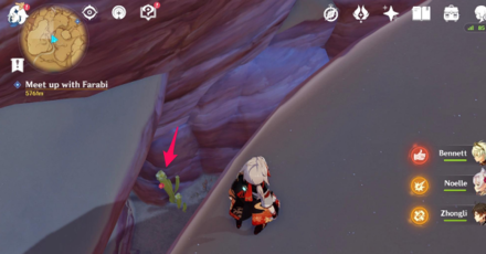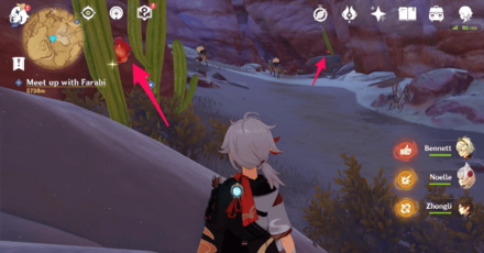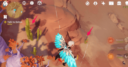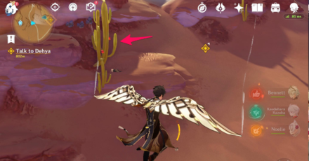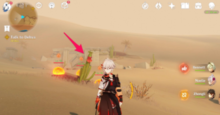 Вам придется использовать несколько телепортов, чтобы собрать Красноплодник на этой локации. Начните с точки к востоку от оазиса Собека. Двигайтесь на запад, затем идите на юг к долине Дахри.
