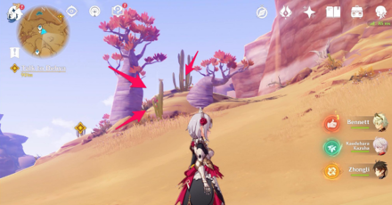 Красноплодник можно найти только в пустыне региона Сумеру. Эти плоды окрашены в малиновый цвет, и вы часто можете найти их, висящих на высоких кактусах.