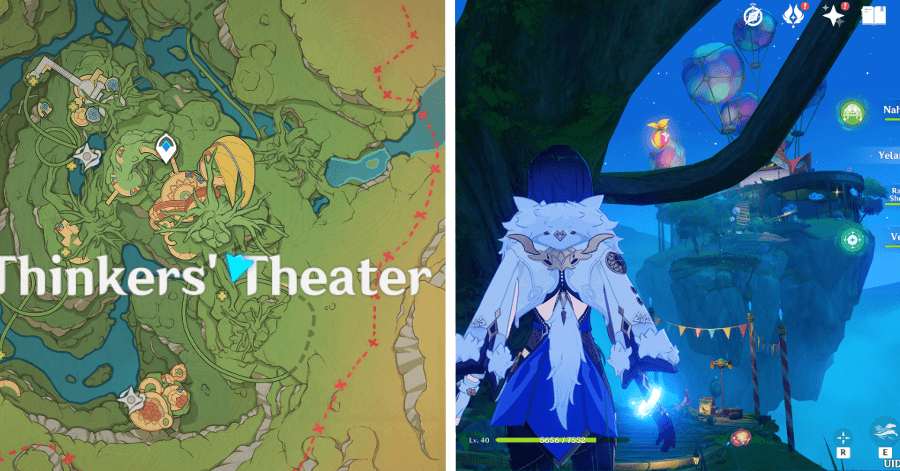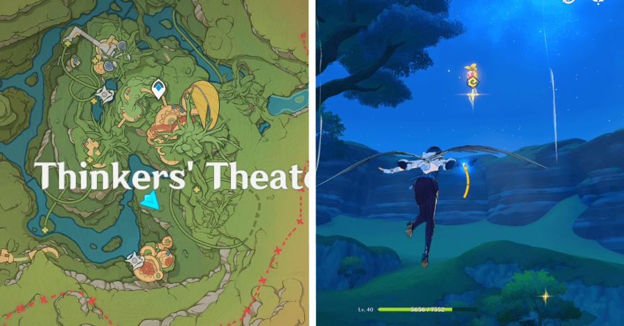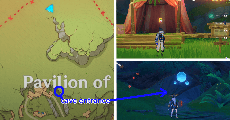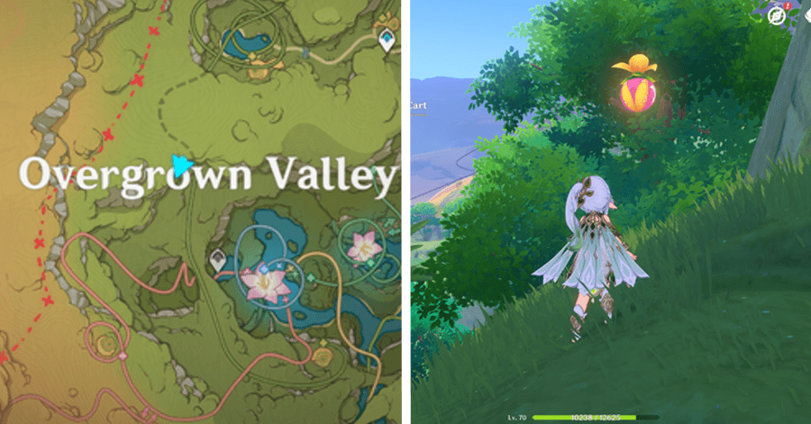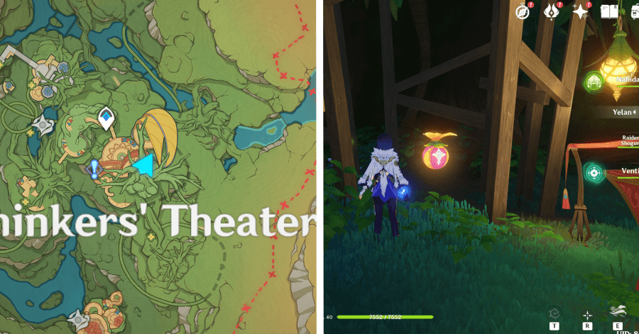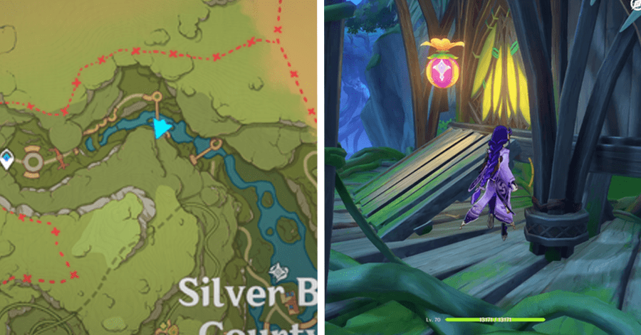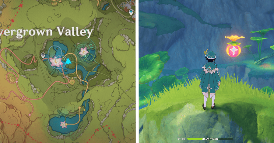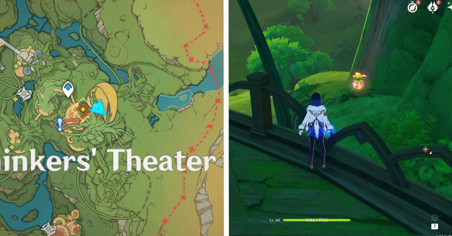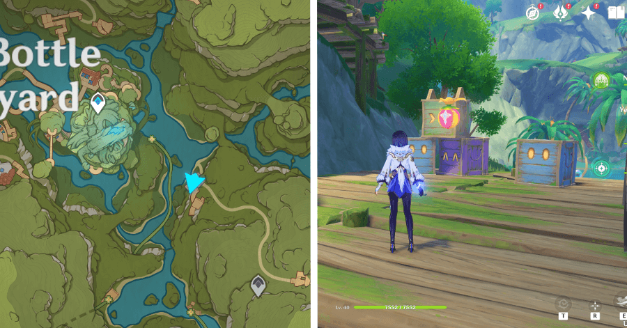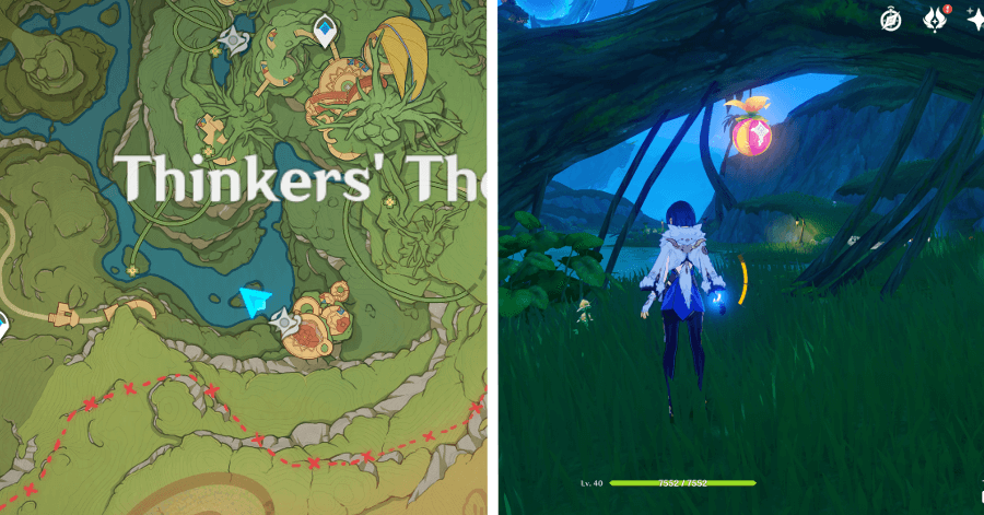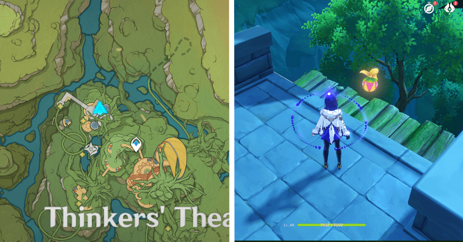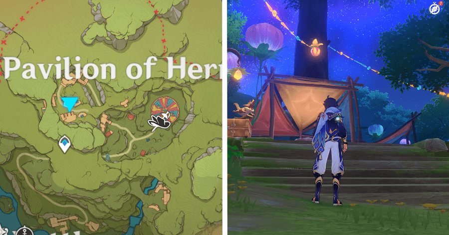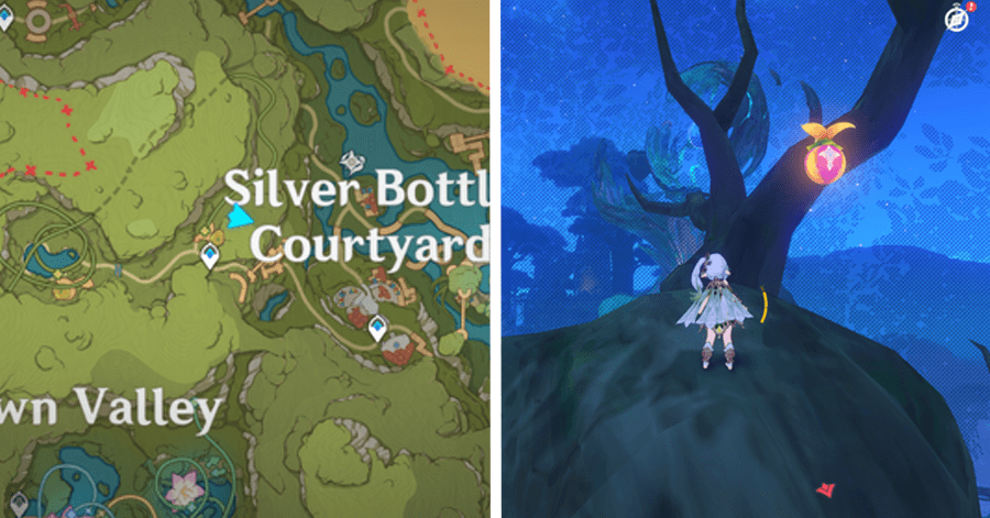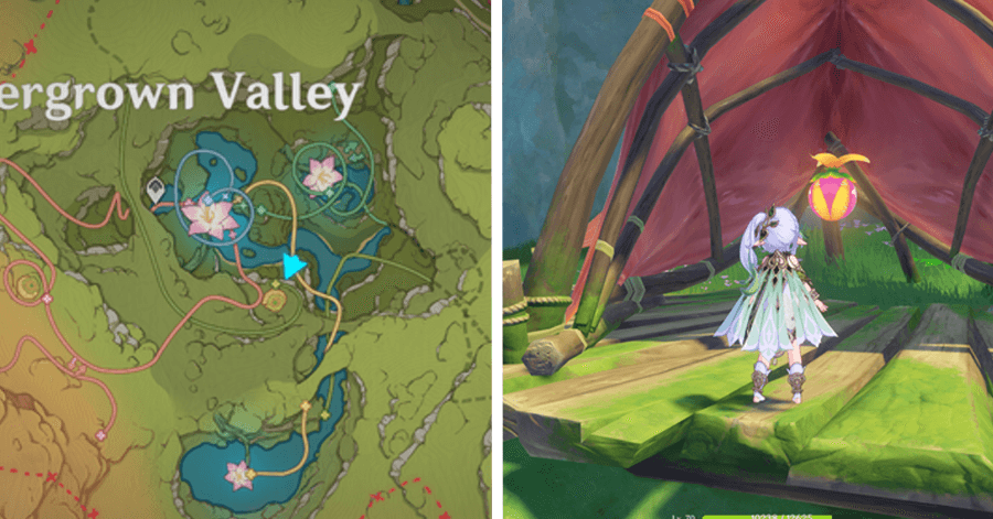| 4 | ![]() Подойдите к этому месту в центре и попросите Капельку о помощи. Появится Анемо-вертушка, которая создаст ветряной поток |