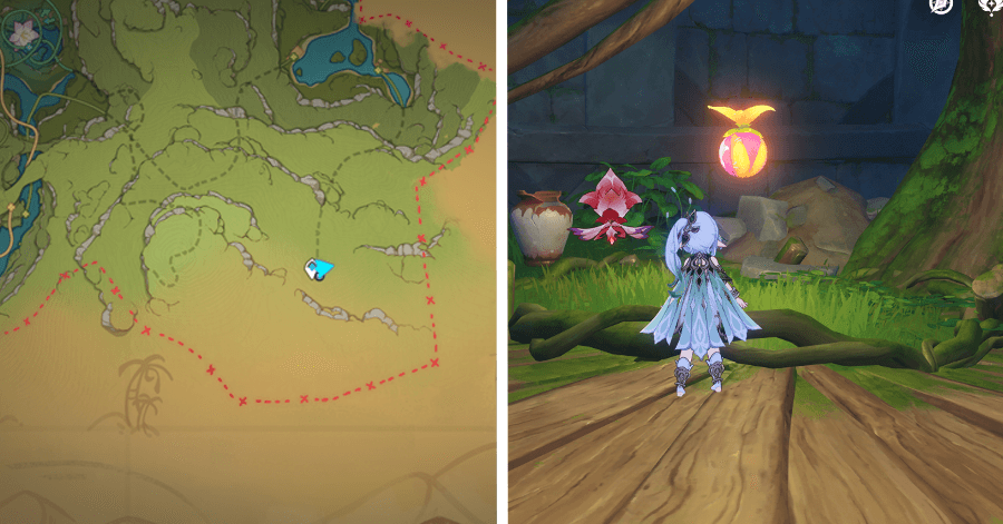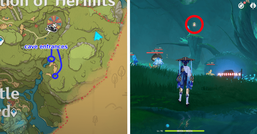 | 15 | ![]() На вершине скалы. Взаимодействуйте с Гидро эйдолоном, чтобы создать гриб, на который вы сможете запрыгнуть |