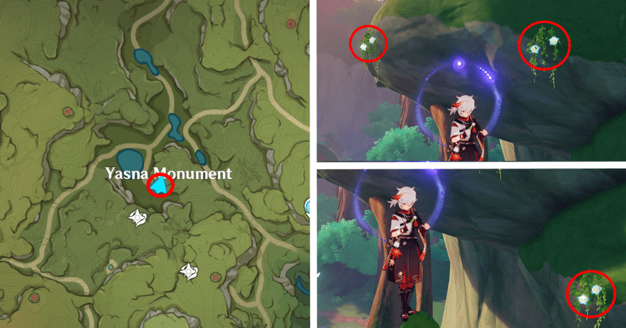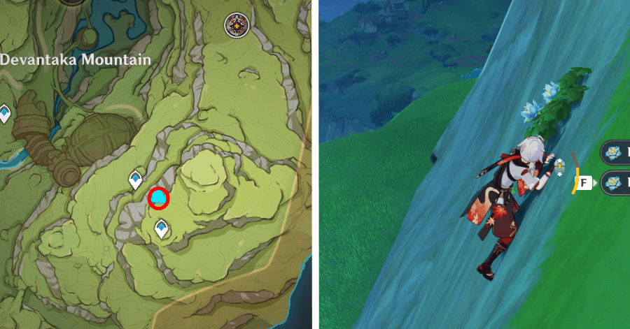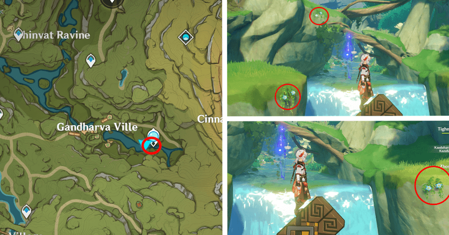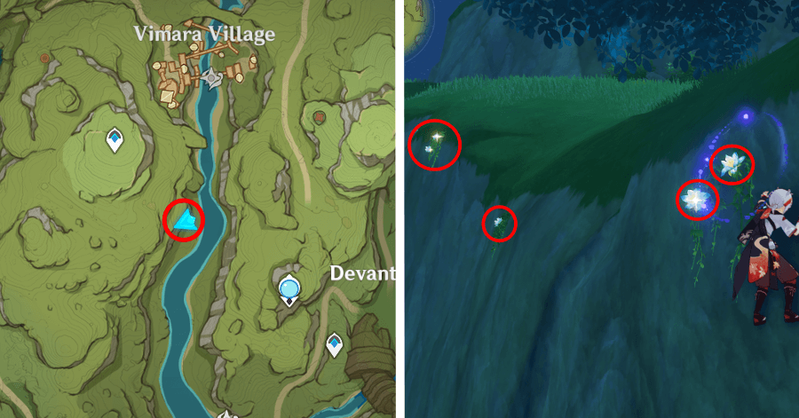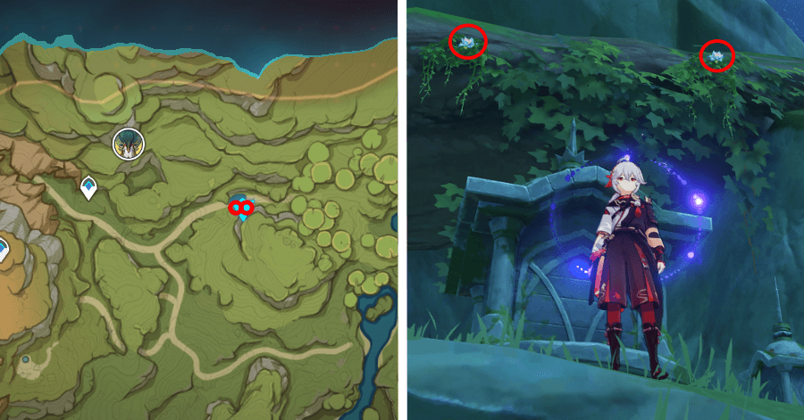 Используйте точку телепортации к югу от деревни и спуститесь к скалам, где можно найти лотосы. Восемь из них находятся к югу от деревни, в то время как шесть — высоко в горах.