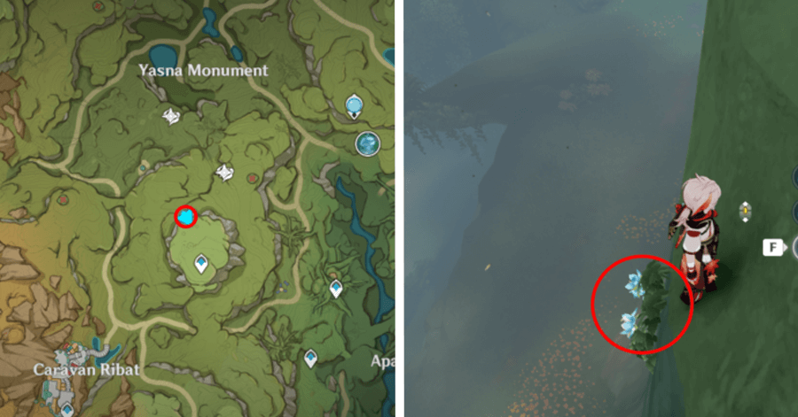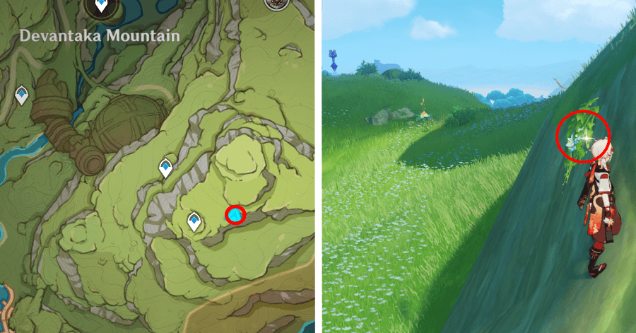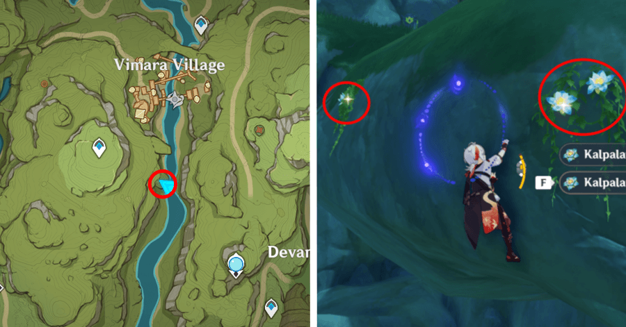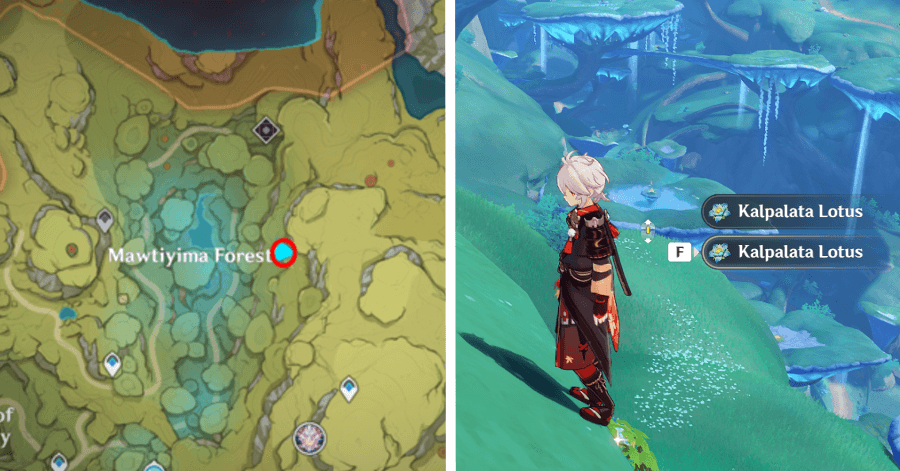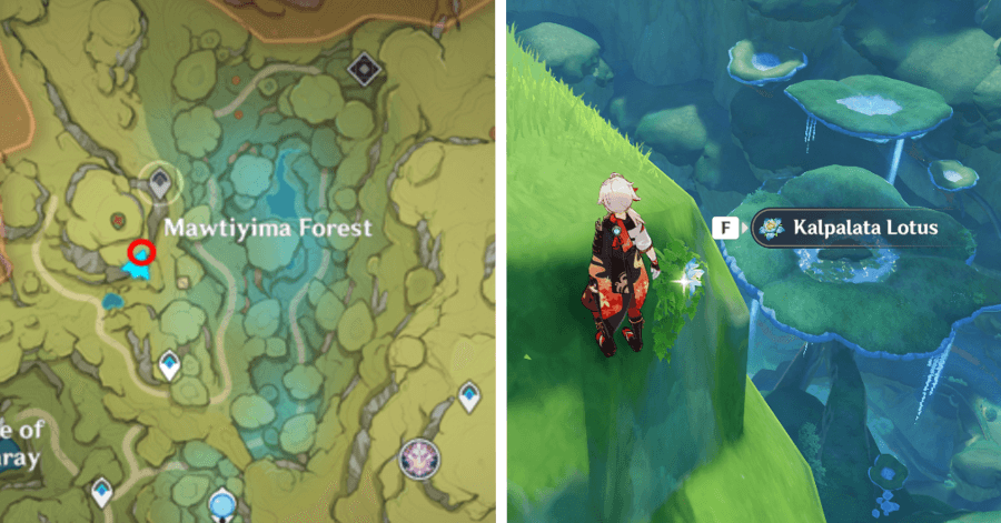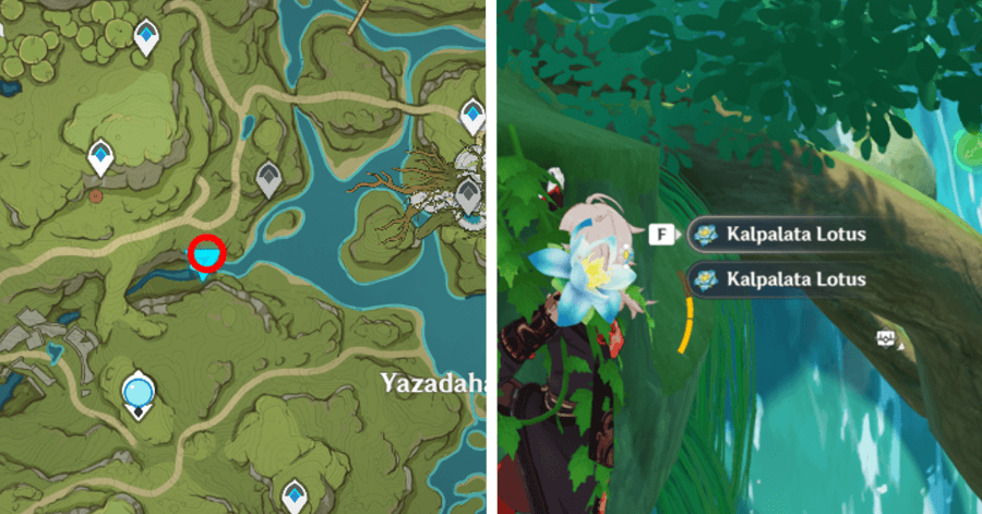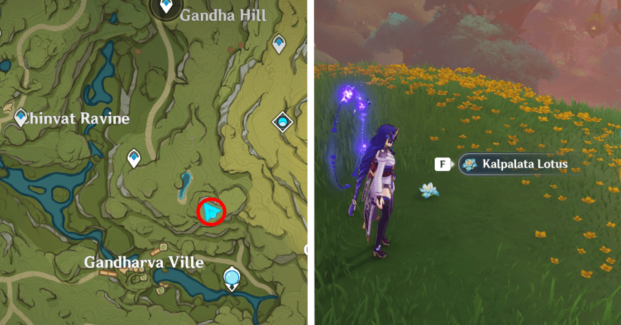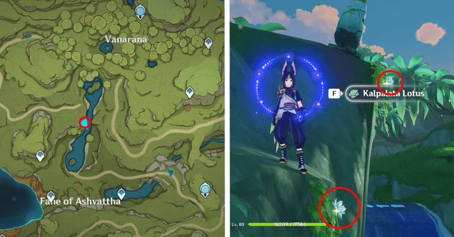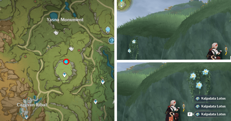 Отправляйтесь к телепорту к северу от Статуи Семерых и поднимитесь по склонам, усеянным цветами, восстанавливающими выносливость, чтобы найти Лотосы кальпалата.