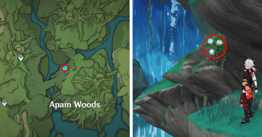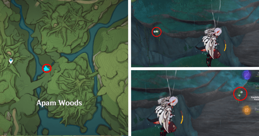 Телепортируйтесь к чаще Апам и спуститесь ближе к земле, туда, где расположены лотосы. Затем идите к скалам к западу от телепорта возле чащи Апам.