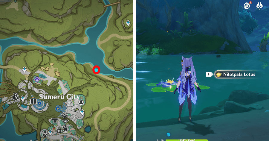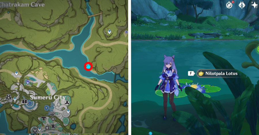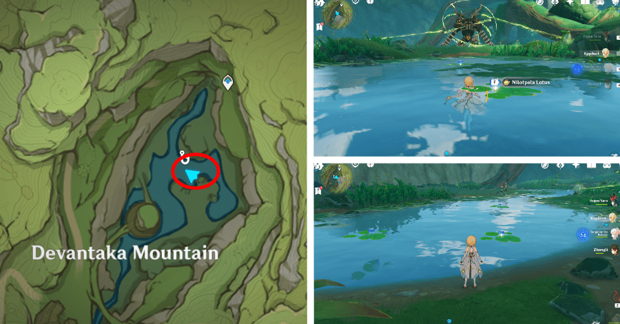 Лотосы нилотпала расположены по всей территории основного Сумеру. Эти зоны можно разделить на 6 основных: Джунгли локапал, лес Авидья, Ванарана, Пардис Дхяй, гора Девантаки и чаща Апам.