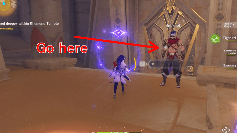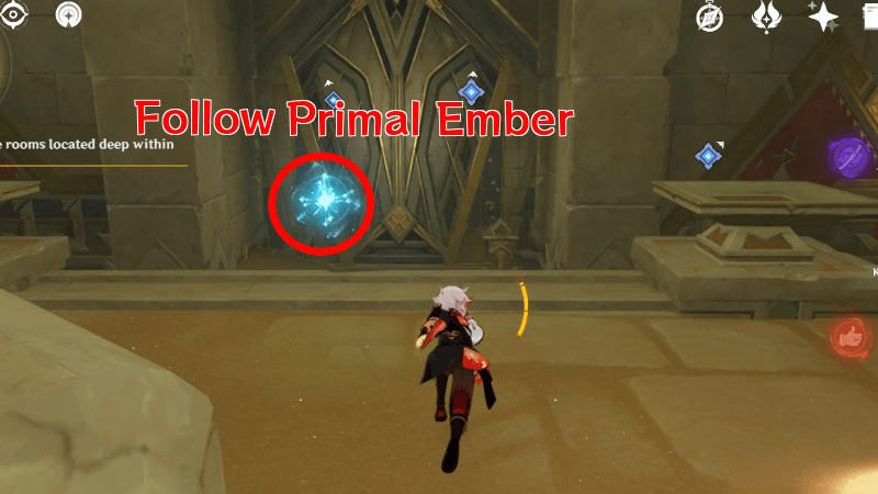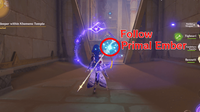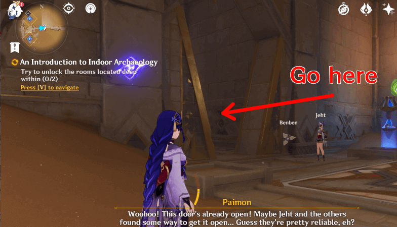 Двигайтесь на северо-запад, чтобы добраться до храма Хемену. Зайдите внутрь, подойдите к двери и позвольте Бенбену открыть ее.